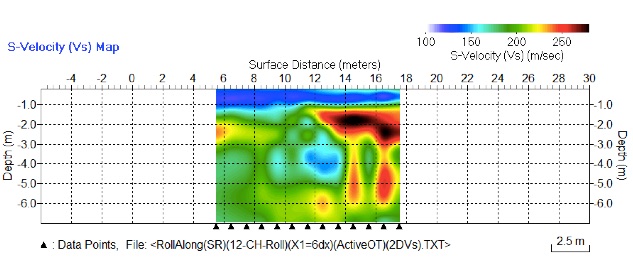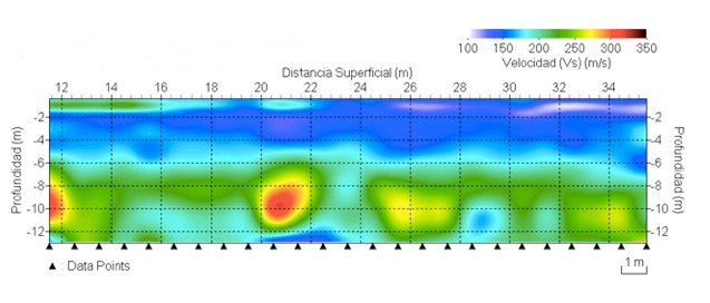 Figura 1. Ejemplo de estudio MASW 2D y la identificación de anomalías.